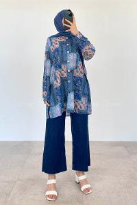 Modalamelif Şal Desen Dijital Baskı Gömlek Mavi