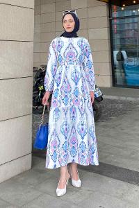Lamelif Kol Bağlama Detaylı Tesettür Elbise Bebe Mavisi