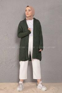 Lamelif Düğme Detaylı Çizgili Hırka Zümrüt