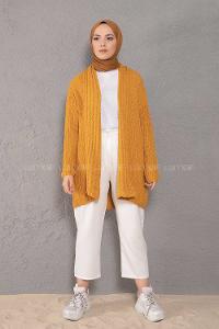 Modalamelif Şal Yaka Triko Hırka Hardal Sarısı