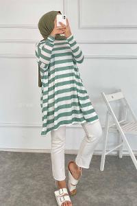 Modalamelif Salaş Çizgi Detaylı Tunik Çağla Yeşili