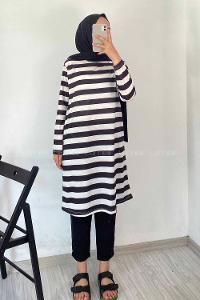 Modalamelif Salaş Çizgi Detaylı Tunik Siyah
