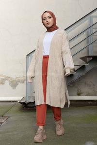 Modalamelif Salaş Fitilli Triko Hırka Taş Rengi