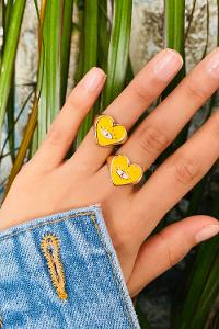 Modalamelif Sarı Mineli Kalp Gözlü Yüzük