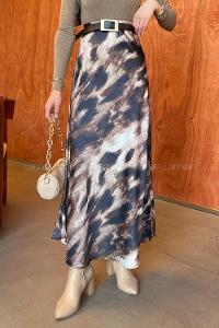 Lamelif Saten Pamuklu Desenli Etek Vizonrengi Siyah
