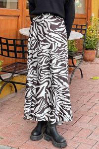 Lamelif Saten Pamuklu Zebra Detaylı Etek Siyah-Krem