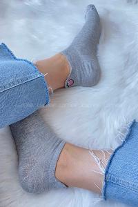Modalamelif Şeftali İşlemeli Patik Çorap Gri