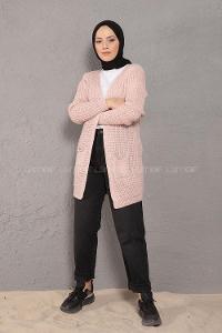 Modalamelif Selanik Cepli Triko Hırka Pudra