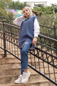 Modalamelif Selanik Örgü Triko Süveter İndigo