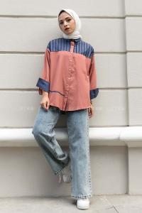 Lamelif Omuz Vatka Detaylı Tesettür Gömlek Acı Kahve