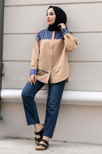 Lamelif Omuz Vatka Detaylı Tesettür Gömlek Acı Kahve