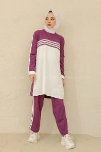 Modalamelif Şerit Çizgili İkili Takım Mor