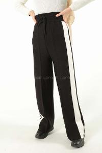 Modalamelif Şeritli Bol Paça Triko Pantolon Siyah