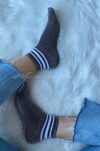 Modalamelif Şeritli Simli Soket Çorap Gri, renk ve beden seçenekleri kredi kartına taksit veya kapıda ödeme imkanıyla lamelif.com da