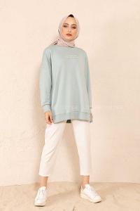 Modalamelif She Need Yaz Baskılı Sweatshirt Mint Yeşili