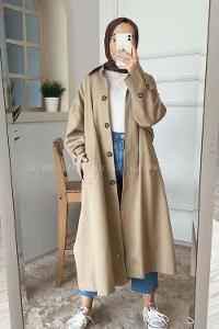 Modalamelif Sırt Baskılı Kol Apoletli Trenç Vizonrengi
