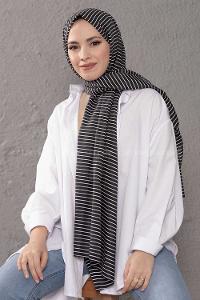Modalamelif Siyah Beyaz Çizgili Desenli Şal