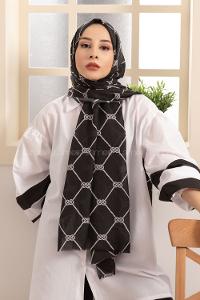 Modalamelif Siyah Beyaz Halat Desenli Şal