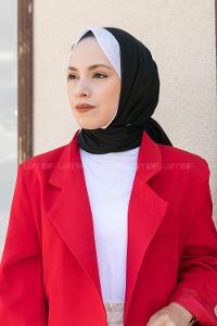Lamelif G Desen Ayrobin Floş Jakar Şal Siyah