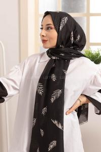 Modalamelif Siyah Beyaz Yaprak Desenli Şal