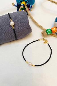 Modalamelif Siyah Boncuk İnci Detay Bileklik