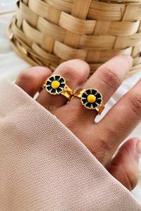 Lamelif Gold 8li Kombin Çiçek Yüzük Seti
