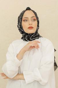 Modalamelif Siyah Renk Çizgi Desen Pamuk Vual Şal