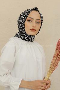 Modalamelif Siyah Renk Taş Motifli Pamuk Vual Şal