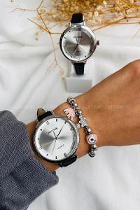 Lamelif Gümüş Siyah Ekartman Tiffany Kordon Kol Saati