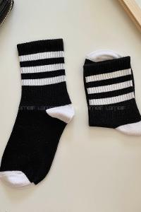 Lamelif Siyah ve Beyaz Çizgili Tenis Çorap