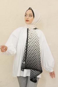 Modalamelif Siyah&Beyaz Baskılı Medine İpeği Şal Altıgen Desen