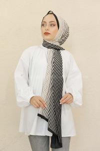 Modalamelif Siyah&Beyaz Baskılı Medine İpeği Şal Aritmik Desen