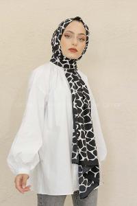 Modalamelif Siyah&Beyaz Baskılı Medine İpeği Şal Dama Desen