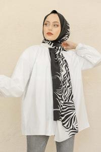 Modalamelif Siyah&Beyaz Baskılı Medine İpeği Şal Fire Desen
