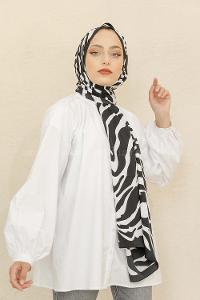 Modalamelif Siyah&Beyaz Baskılı Medine İpeği Şal Zoom Desen