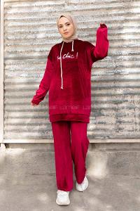 Modalamelif So Chic Baskılı Kadife İkili Takım Bordo