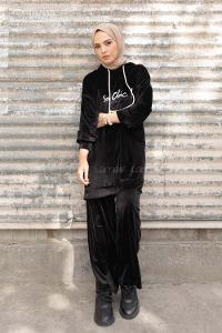 Modalamelif So Chic Baskılı Kadife İkili Takım Siyah
