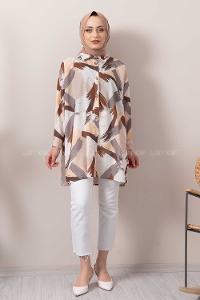 Lamelif Omuz Vatka Detaylı Tesettür Gömlek Acı Kahve
