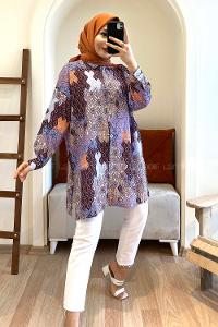 Modalamelif Soyut Desen Dijital Baskı Gömlek Lila