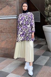 Modalamelif Soyut Desen Dijital Baskı Gömlek Mor