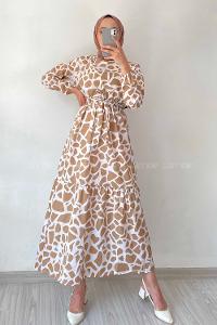 Modalamelif Soyut Desen Elbise Sütlü Kahve