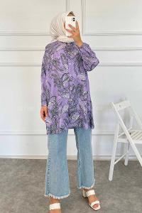Lamelif Omuz Vatka Detaylı Tesettür Gömlek Acı Kahve