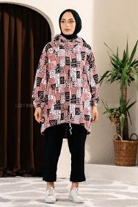 Ekose Soyut Desen Kapüşonlu Gizli Cepli Kap