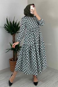 Modalamelif Soyut Desen Kol Lastikli Elbise Yeşil