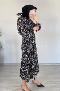 Modalamelif Soyut Desen Kuaşaklı Elbise Siyah