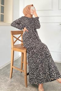Lamelif Balon Kol Katlı Tesettür Elbise Siyah