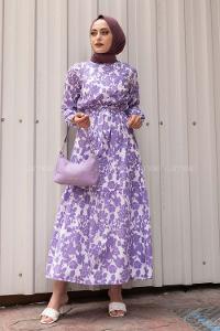 Modalamelif Soyut Model Kuşaklı Elbise Lila