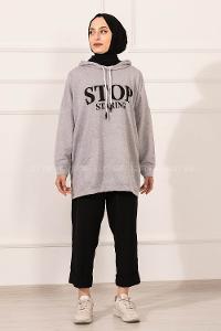 Modalamelif Stop Yazı Baskılı Sweat Gri