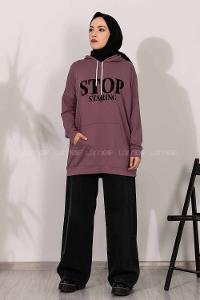 Modalamelif Stop Yazı Baskılı Sweat Mor