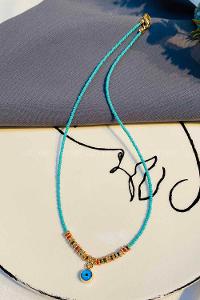 Modalamelif Su Yeşili Boncuk Nazar Detaylı Kolye, renk ve beden seçenekleri kredi kartına 12 taksit veya kapıda ödeme imkanıyla lamelif.com da